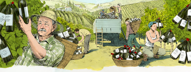 | Graham Samuels-Naturviner väcker känslor / Natural Wine Stirs Up FeelingsIllustration for an article on natural wine, which is produced without chemical additives. |